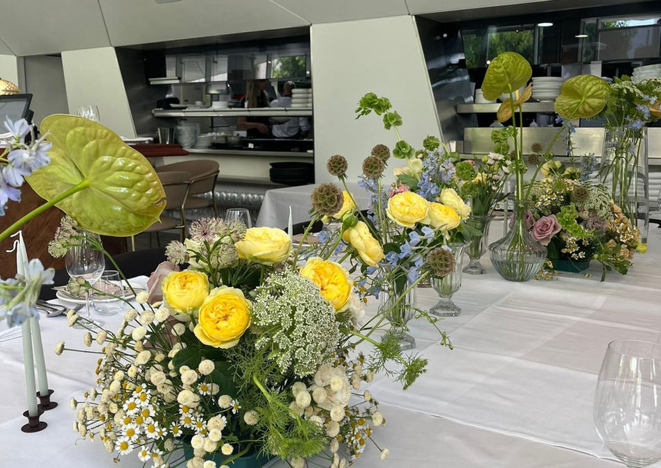 קונספט אירופי קלאסי עם תפאורת פרחים ופירות בכלי כסף. עיצוב שולחן חגיגי ונרות אווירה, איורי תפריט מעוצבים ומודפסים בהתאמה. תל אביב 2025